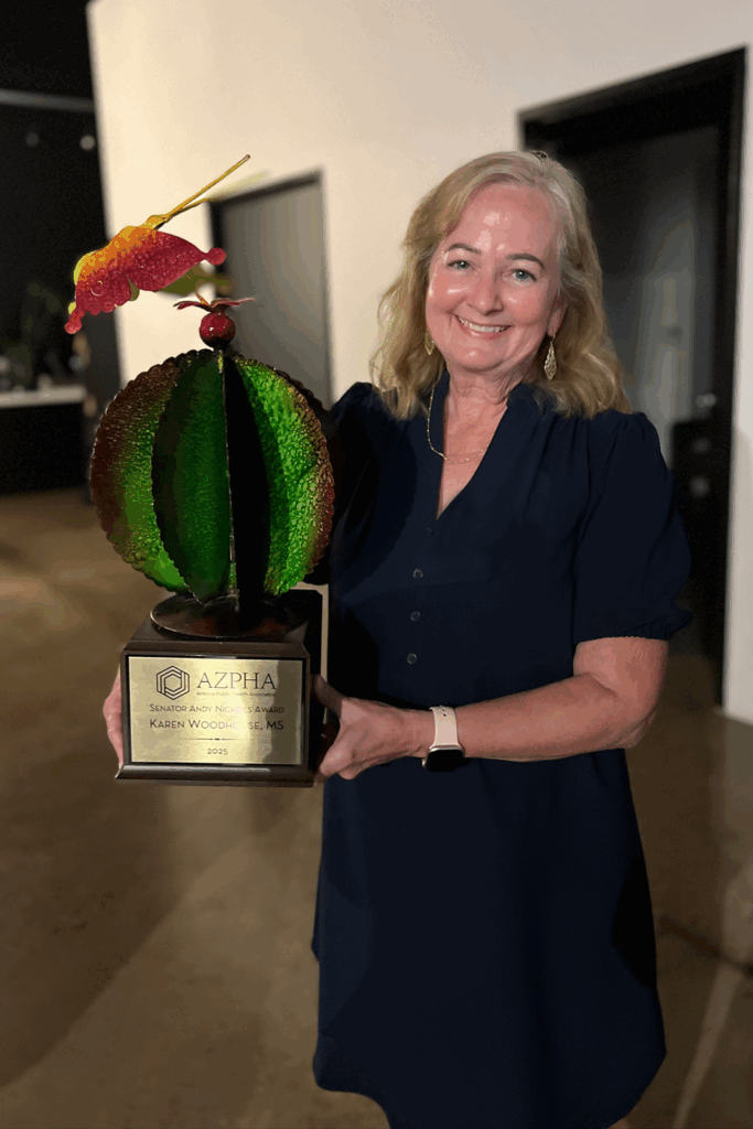 Capping off a career that included leadership roles at the Arizona Department of Education and First Things First, Karen recently received the 2025 Senator Andy Nichols Award from the Arizona Public Health Association. The prestigious award honors those who have made outstanding contributions to public health throughout their professional life.